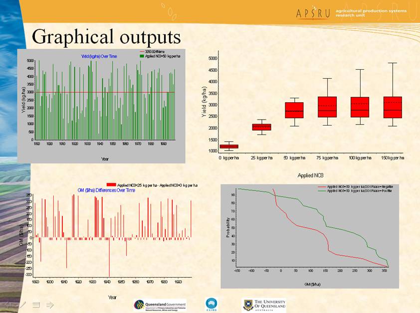 取得APSIM使用權的途徑很多,包括與APSUR 合作開發、非商業型態的合作計畫、教育用途及商用模式,收費的原則只要是支援相關的研究與開發費用,目前提供教育訓練課程協助使用者更進一步瞭解該系統的核心精神與運用模式。未來主要必須面對的問題,是如何將APSIM標準化以適應新區域及作物,並訓練出當地諮詢專家維護和整合資料庫及提供服務。