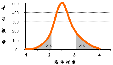 圖七 為實驗之某特定群體羊隻依特性統計分佈曲線圖