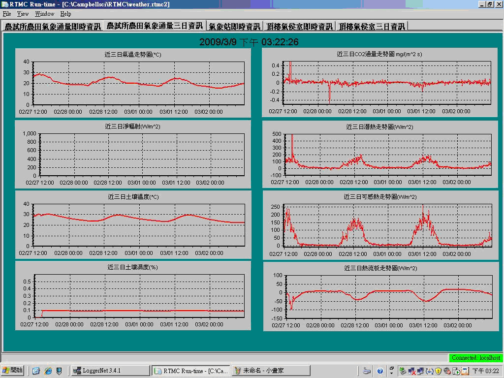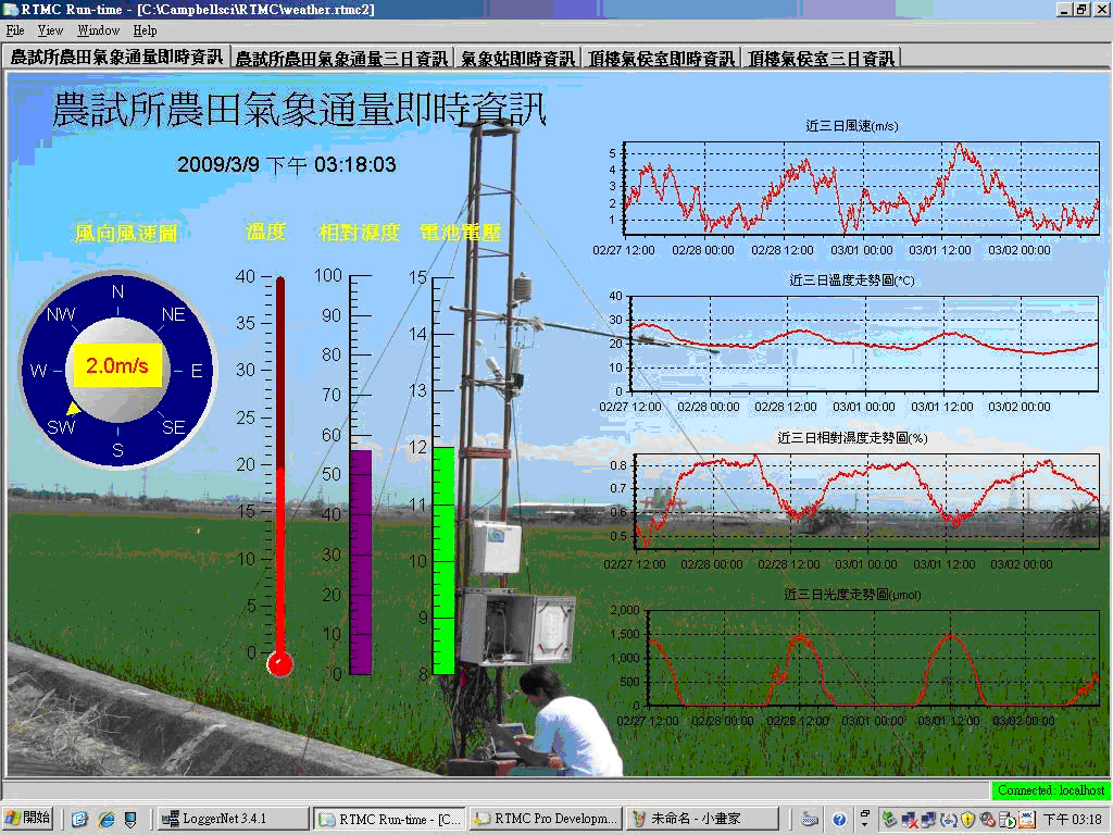 圖1. 農業試驗所通量塔透過無線網路系統傳輸通量即時資訊之情形 |