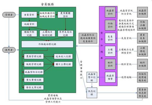 圖2 作物優質生產知識整合平台之系統功能流程及資料庫架構圖 |