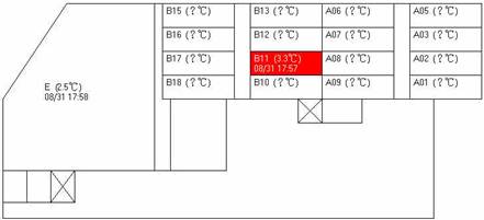 對於倉儲設施的目前溫度,規劃以平面圖的方式呈現目前所有