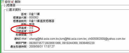 圖5 溫度感測器警示範圍設定