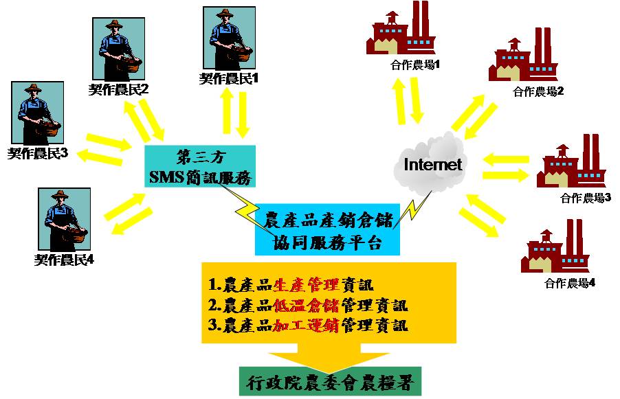 契作系統為可獨立運作之開發系統,採圖形式的生產計畫表現,易看易懂。但在推行時,我們也發現了原本規劃在田間作業使用PDA等設備回報生產資訊的動作,對農友來說接受度不高。若要靠著中心人員巡視時再輸入資料,這樣資料的即時性不足。因此,未來在推廣的過程中,除了將產銷管理系統加以推廣至各個集貨單位外,更規劃加強改善契作管理的作業方式,加強以手機簡訊服務(SMS)的方式來作為資料回報之媒介。
