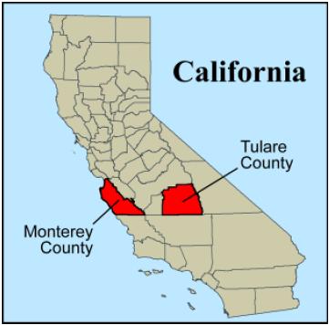 ¹Ï1. ¥[¦{Monterey¤ÎTulareªº¦ì¸m