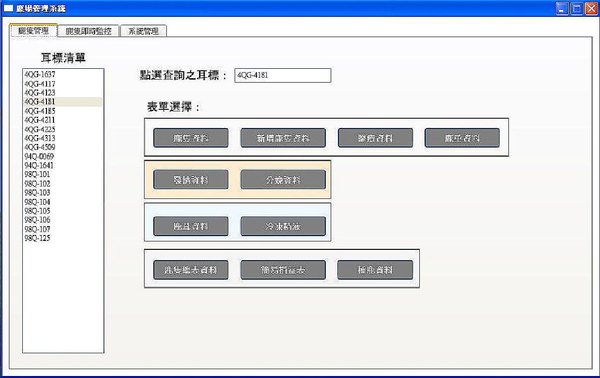 圖1 鹿隻生產管理資訊系統功能畫面圖 |