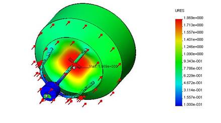 | 圖3 浮標結構受3G自由落體應力之型變 |
