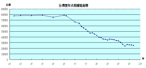 近幾十年來,因為自由貿易進口糧食產品,國產糧食生產成本較進口糧食高,國人又因社會變遷生活型改變,且飲食多樣選擇性變多,我國每人每年食米消費量呈下降趨勢,又因稻農平均年事較高(94年調查資料約為62歲),年青人務農意願較低,辦理休耕意願提高,也導致近年來台灣稻田種植面積維持在25-26萬公頃,約僅為民國65-70年代種稻面積的1/3。然稻田長期休耕,恐致種稻老農技術失傳、水利設施失修及稻米文化式微等,對農村及自然景觀環境影響劇大,恐造成一種不可逆的遺憾。在氣候與環境變遷下,全球糧食供應呈不穩定狀態,各國無不將確保糧食供應無虞為首要任務,政府部門更應將我國穩定生產主食-稻米,列為重要施政,提高國人消費米食意願與習慣,建立國人對台灣米的認知,讓後代子孫也能繼續吃到台灣米。