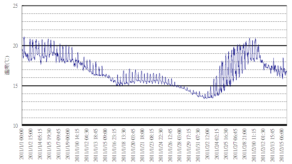 圖2、海墘嶼測站於2011年寒潮期間之水溫變化 |