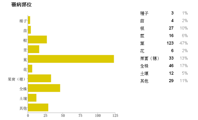 圖13、作物病蟲害作物罹病部位統計(至10月止) |