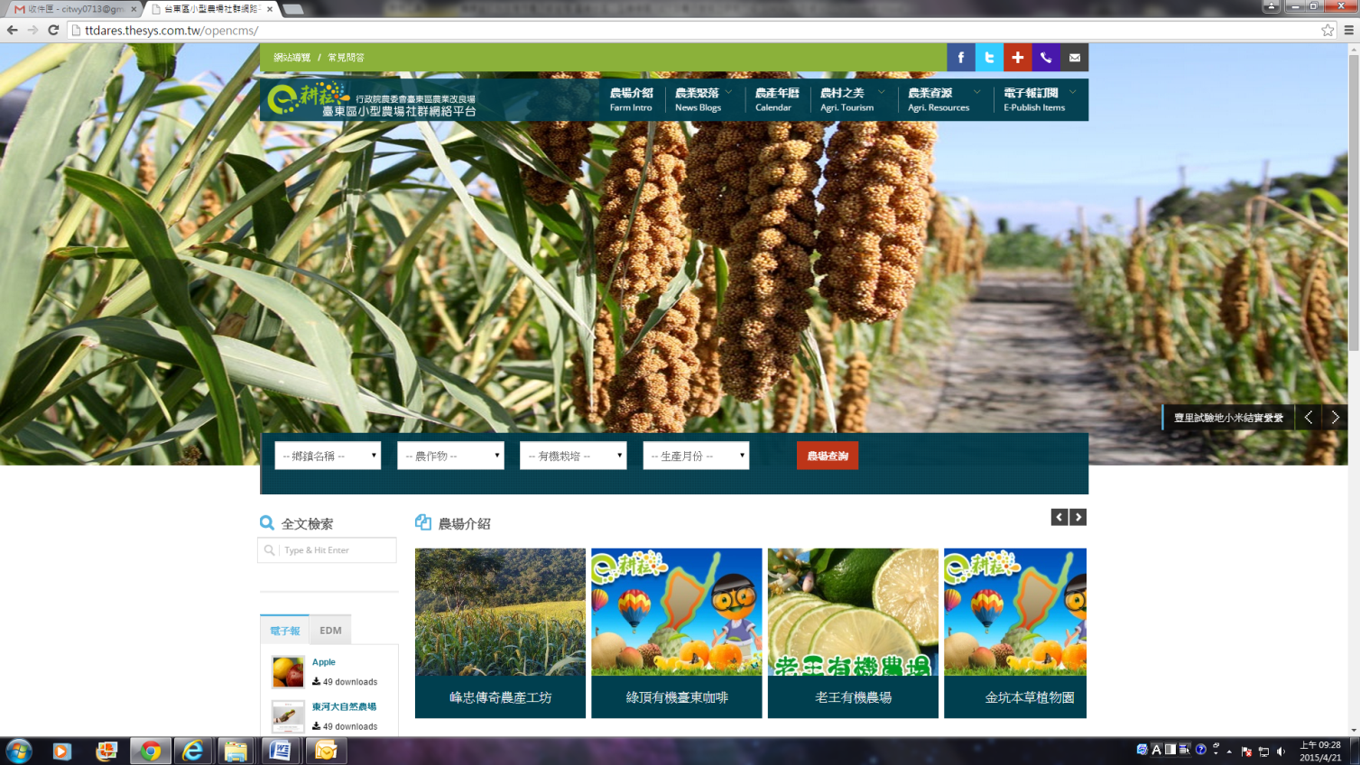 臺東場規劃建置之小型農場社群網絡行銷平台系統,目前已完成前後台試用版網頁系統(圖3)。在正式上線前,將會持續補足個別農場的資料庫、辦理推廣平台系統之教育訓練課程,以加強小型農場之介紹與行銷,使農友在社群網絡行銷上有進一步的學習機會,並蒐集試用農友的回饋意見,進行正式上線前的系統改善。未來農友將可透過社群資訊串連及推薦新農場加入,提升產品能見度及銷售成績,進而讓消費大眾更認識臺東農業生產環境,擴大農產品產銷規模。