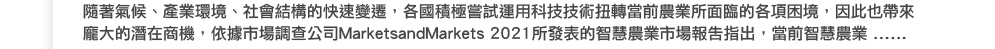 本期電子報首先介紹國內外透過資通訊技術整合農業機械發展智慧農業機器人相關案例,同時分享應用大數據、資訊化管理系統,發展林業智慧管理,邁向生態永續目標,提供讀者掌握農業資通訊技術應用與創新發展方向。